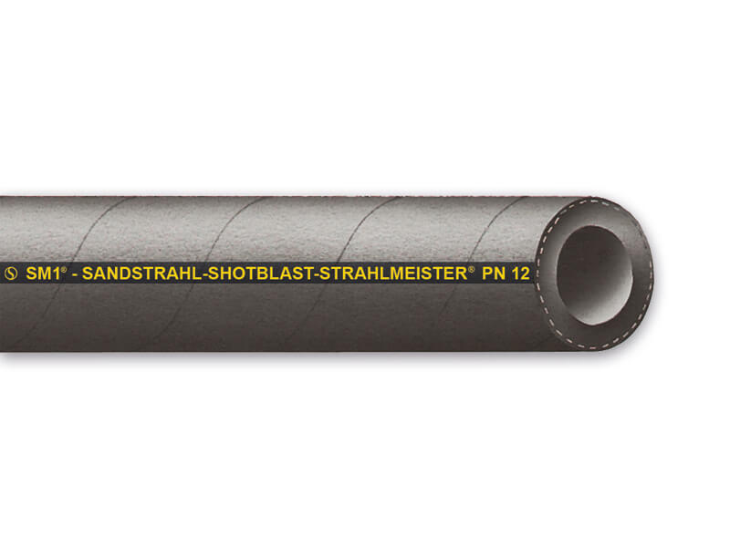 Wąż SM1® - STRAHLMEISTER to najwyższej jakości wąż do piaskowania i śrutowania dostępny na rynku. Wąż posiada bardzo wysokiej jakości, odporną na zużycie warstwę wewnętrzną ze specjalnej mieszanki kauczuków. Nadaje się do transportu mediów bardzo mocno ścierających, takich jak piasek kwarcowy, piasek, korund i szkło. Wąż ten powstał do bardzo ciężkich zastosowań i ma wyjątkowo długą żywotność ze względu na bardzo dobrą odporność na ścieranie warstwy wewnętrznej.