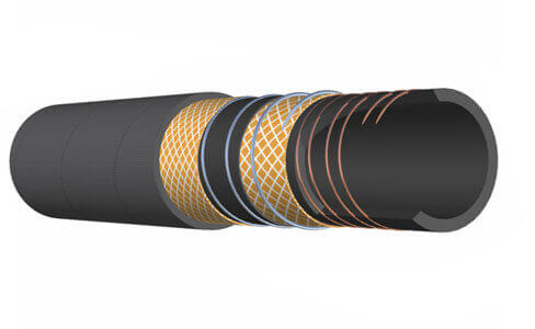 Wąż ADARA CASSETTE Ω/CL SD zbudowany jest z mieszanki kauczuków naturalnego z butadienowo-styrenowym (NR/SBR), zarówno wewnątrz jak i z zewnątrz, ze stalową spiralą i podwójnym wzmocnieniem tekstylnym.