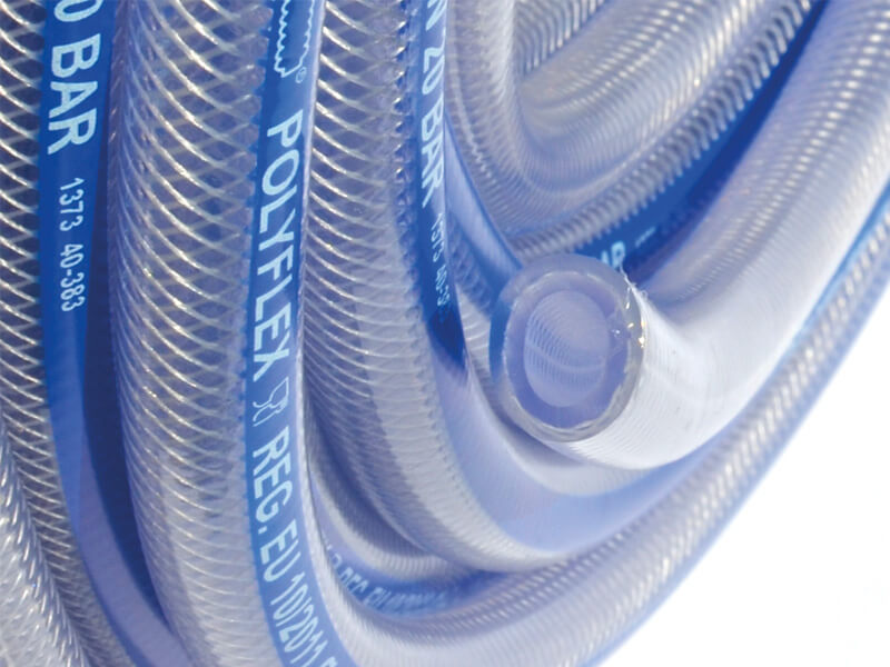 POLYFLEX to elastyczny, wytrzymały i uniwersalny wąż PVC. Siatka z włókien poliestrowych jest optymalnie umieszczona w wężu, dzięki czemu wąż nie ma tendencji do skręcania się i nie rozwarstwia się. Wąż ma ograniczoną odporność chemiczną zgodną z Tablicą Odporności Chemicznej dla PVC i jest wykonany z nietoksycznego tworzywa sztucznego. Można go stosować w wielu maszynach i narzędziach wymagających do pracy sprężonego powietrza, oraz do transportu różnych płynów i chemikaliów w przemyśle i usługach, a nawet można przesyłać płynne artykuły spożywcze, zgodnie z normami i atestami.