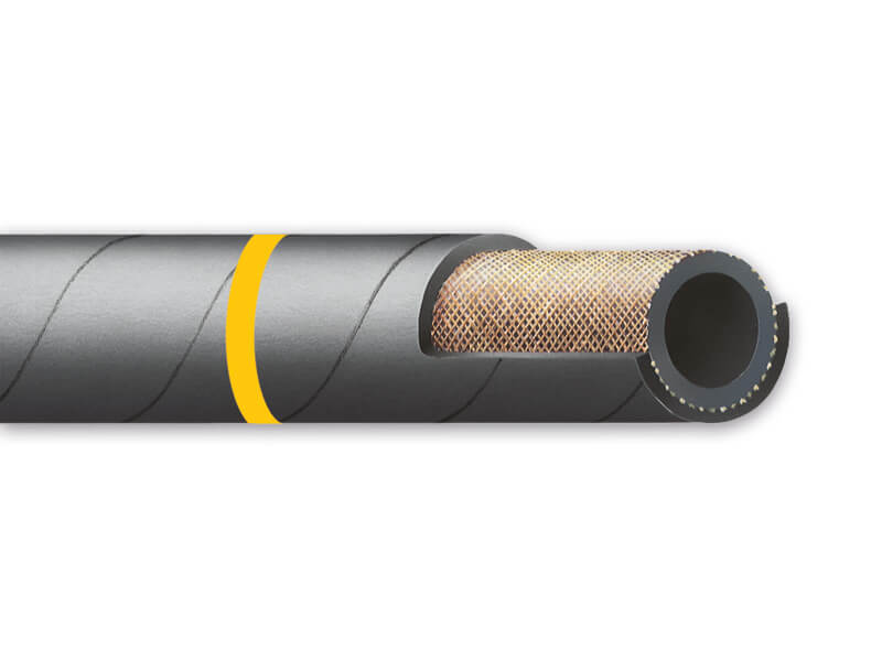 Wąż INDUCORD®/TC wykonano z gumy EPDM, z wzmocnieniem z oplotu tkaniny syntetycznej, oraz dwoma linkami odprowadzającymi ładunki elktrostatyczne wykonanymi ze stali szlachetnej.
