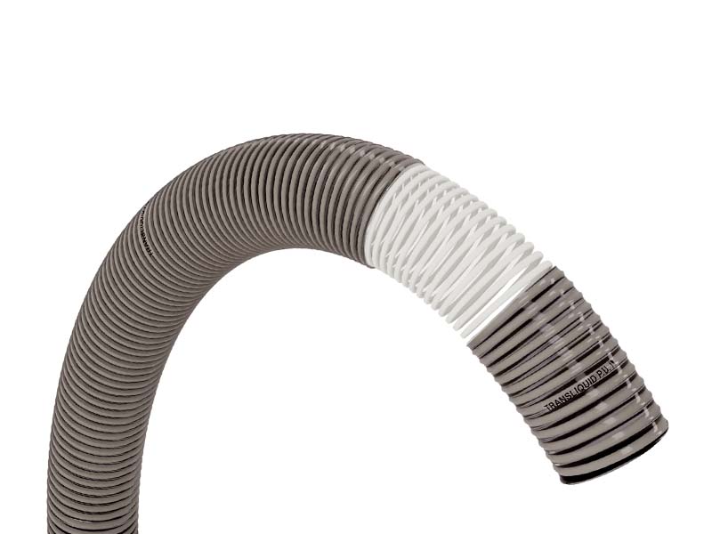 TRANSLIQUID PU to wąż przeznaczony do transportu silnie ścierających płynów i zawiesin, takich jak błoto, opiłki, piasek, a także artykułów spożywczych, na przykład różne ziarna, nasiona czy przeciery. Jego konstrukcja zapewnia skuteczne ograniczenie tworzenia się złogów wewnątrz węża dzięki gładkim ściankom, co ułatwia płynny przepływ substancji. Zewnętrzna powierzchnia węża ma falistą strukturę. Spiralna wkładka wykonana jest z usztywnionego tworzywa sztucznego, co umożliwia pracę z podciśnieniem podczas zasysania płynów i zawiesin.