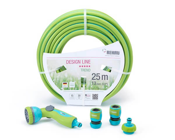 Wąż Ogrodowy REHAU TREND - DESIGN LINE - z Elastycznego PCV - ze Złączkami, Pistoletem Zraszającym i Wtykiem - Bardzo Lekki - Tłoczny