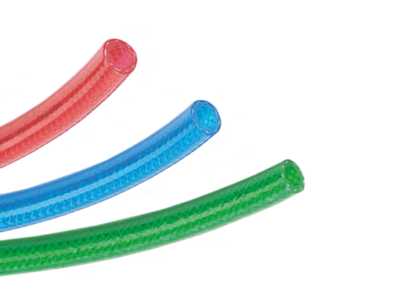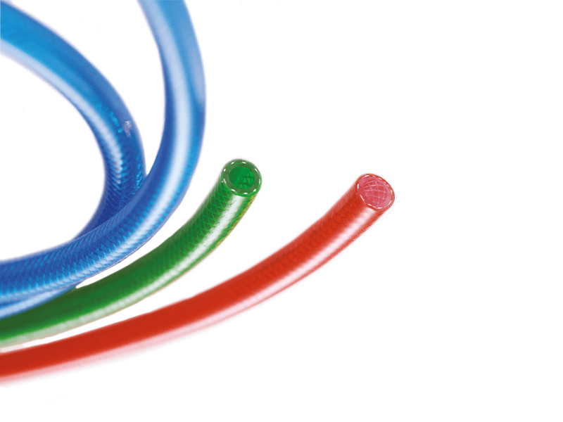 Wewnętrzna i zewnętrzna warstwa węża RAUFILAM-E wykonane są z tworzywa sztucznego PVC (polichlorek winylu), z oplotem z włokien poliestrowych.