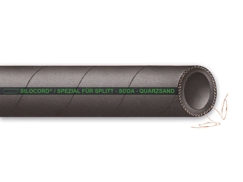 Wąż tłoczny SILOCORD®/SPEZIAL jest bardzo odpornym na ścieranie, nacięcia i zużycie wężem silosowym. Używany do obsługi silosów, zbiorników magazynowych i kontenerów na silnie ścierające powierzchnie materiały sypkie. Wąż ma bardzo grubą, odporną na zużycie warstwę wewnętrzną z kauczuku naturalnego (NR), co zapewnia bardzo dobrą żywotność przy ciężkich i intensywnych zastosowaniach. Elektryczność statyczna jest odprowadzana przez dwa miedziane druty antystatyczne, a sama guma ma również właściwości przewodzące R<106 Ω.