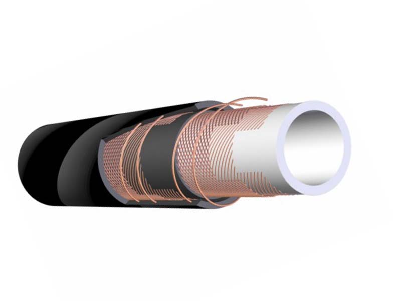 Wąż STRATOS FOOD SUPER Ω/C D wykonany jest z kauczuku naturalnego (NR), wzmocniony siatką tekstylną, z miedzianą linką uziemniającą.