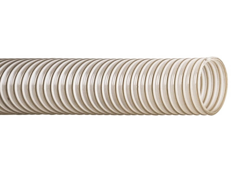 poliuretan (2-2,5 mm), przezroczysty, z wbudowaną spiralą stalową, wewnątrz gładki, na zewnątrz falisty |