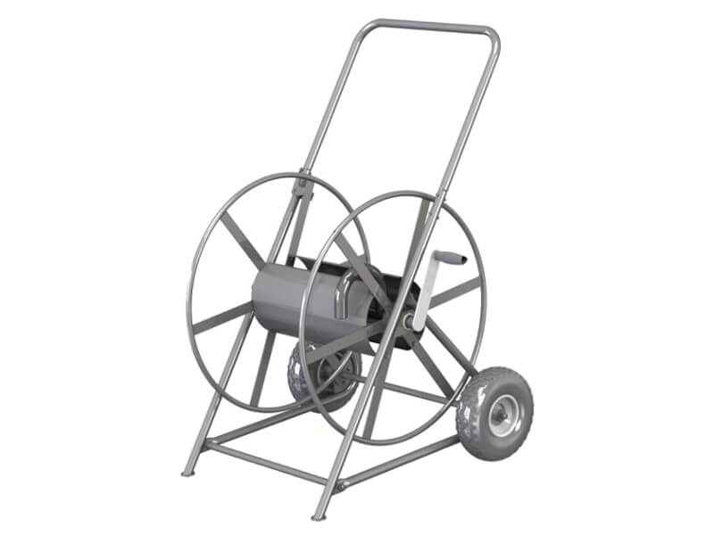 Wózek na wąż do użytku w przemyśle, ALBA SUPER PROFI 2, cała konstrukcja wykonana ze stali ocynkowanej ogniowo, dzięki temu najlepsza ochrona przed korozją. Idealny przy budowie dróg, dla wojska, dla żwirowni, dla portów, dla kolei.
