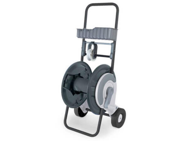 Wózek na wąż REHAU COMFORT zbudowany jest z plastiku. Posiada ramy oraz rączkę ze stali. Jest bardzo lekki. Odpowiedni do transportu 60m węża o średnicy 13mm(1/2") lub 30m węża o średnicy 19mm(3/4").