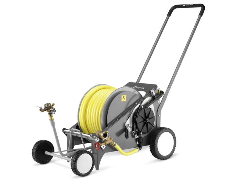 Wózek ze zraszaczem GEKA plus RW40, produkcji KARASTO, jest urządzeniem przeznaczonym do przechowywania, zabezpieczania i transportu węży do przesyłu wody do nawadniania, głównie w profesjonalnych zastosowaniach ogrodniczych. Dzięki połączeniu możliwości wózków transportowych i zraszaczy sektorowych, urządzenie doskonale nadaje się do obsługi dużych i średnich terenów zielonych, zwłaszcza do nawadniania przyhotelowych trawników i rabatek, parków, szkółek drzew, obiektów sportowych, boisk z naturalną nawierzchnią, czy wybiegów dla zwierząt hodowlanych.