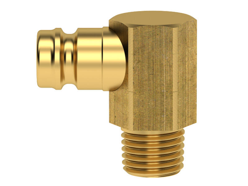 Wtyk szybkozłączki z gwintem zewnętrznym pod kątem prostym, wykonany z mosiądzu (MS 58).