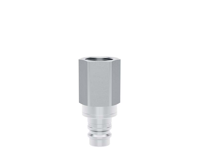 Wtyk szybkozłącza dwustronnie odcinającego z gwintem wewnętrznym wykonany ze stali szlachetnej (nierdzewnej) i uszczelnieniem z Vitomu (FKM).