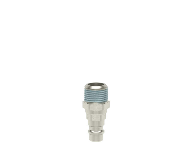 Wtyk szybkozłączki z powlekanym gwintem zewnętrznym, wykonany ze stali hartowanej, niklowane i uszczelnieniem z gumy nitrylowej (NBR).