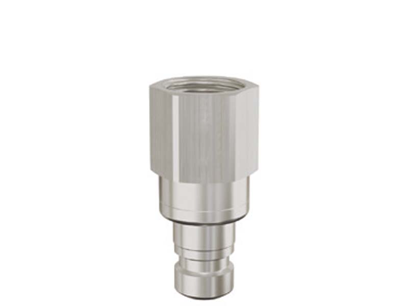 Wtyk szybkozłączki z gwintem wewnętrznym, z zaworem obustronnie odcinającym, wykonany ze stali niklowanej.