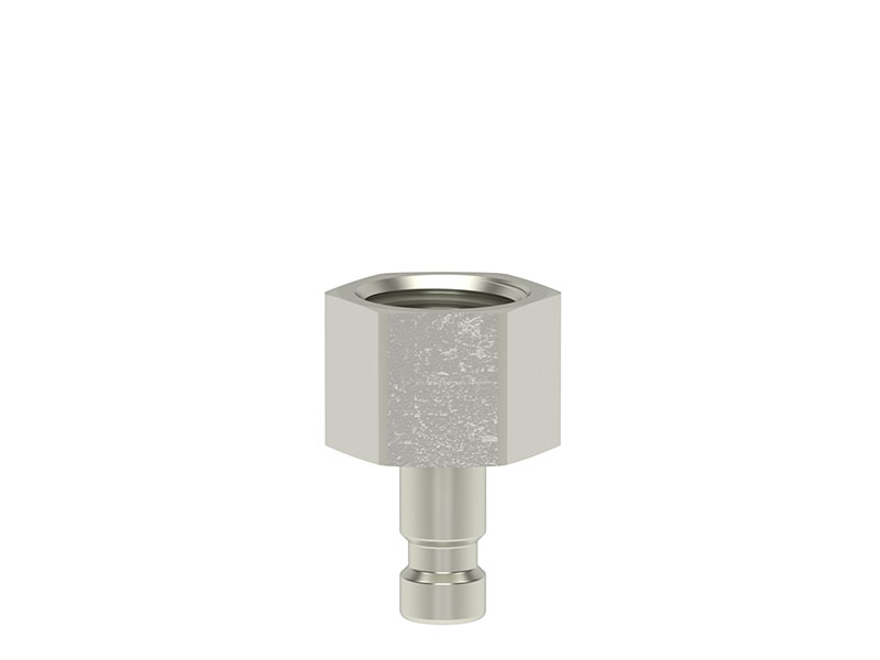 Wtyk szybkozłącza z gwintem wewnętrznym, wykonany z mosiądzu (MS 58) niklowanego.