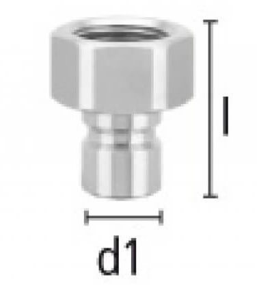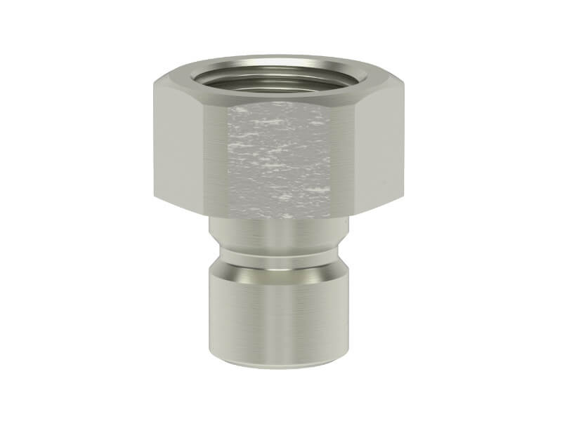 Wtyk szybkozłączki z gwintem wewnętrznym, wykonany z mosiądzu (MS 58) niklowanego.