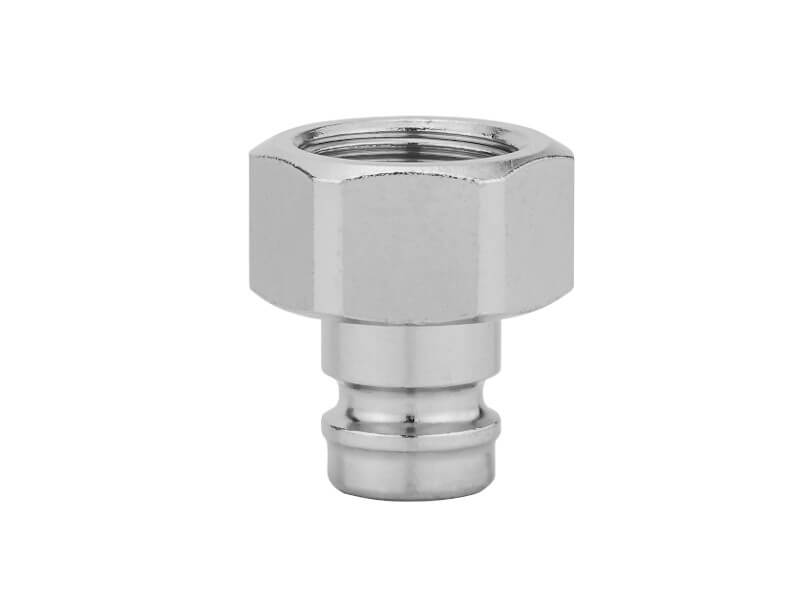 Wtyk szybkozłączki z gwintem wewnętrznym, wykonany z mosiądzu (MS 58) niklowanego.
