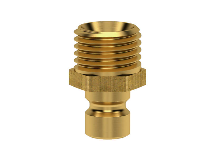 Wtyk szybkozłączki z króćcem do węża, wykonany z mosiądzu (MS 58).