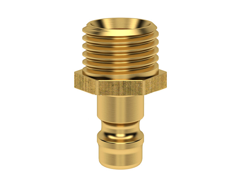 Wtyk szybkozłączki z króćcem do węża, wykonany z mosiądzu (MS 58).