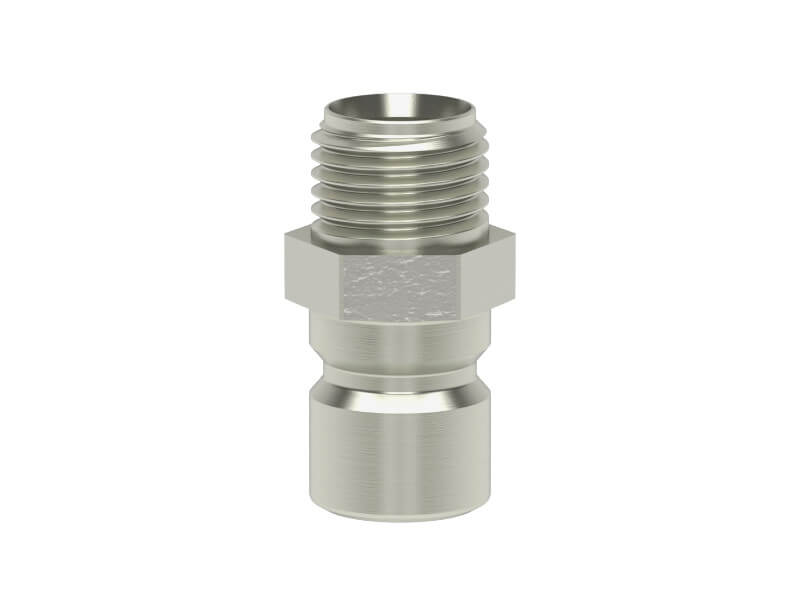 Wtyk szybkozłączki z gwintem zewnętrznym, wykonany z mosiądzu (MS 58) niklowanego.
