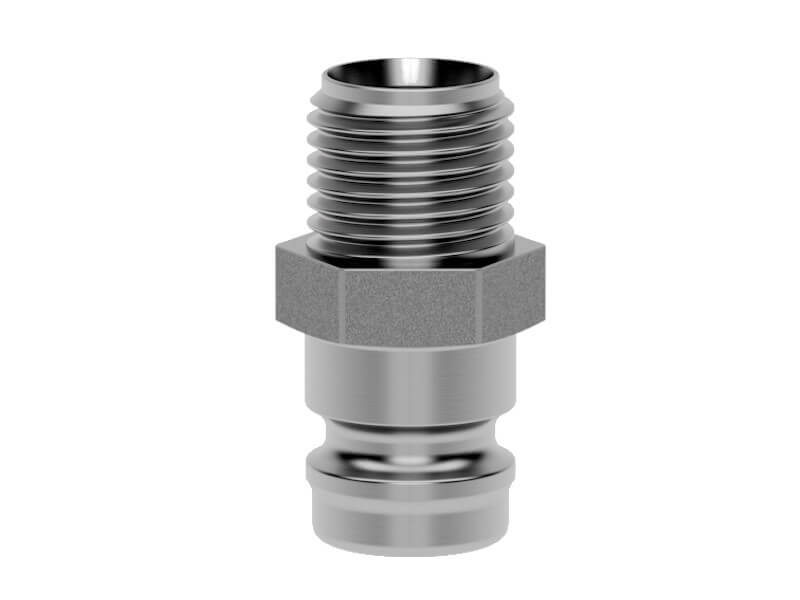 Wtyk szybkozłączki z gwintem zewnętrznym, wykonany ze stali szlachetnej z uszczelnieniem z Vitonu.