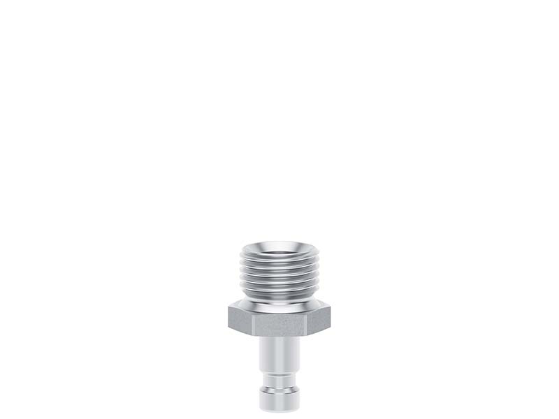 Wtyk szybkozłącza z gwintem zewnętrznym, wykonany ze stali szlachetnej (nierdzewnej).