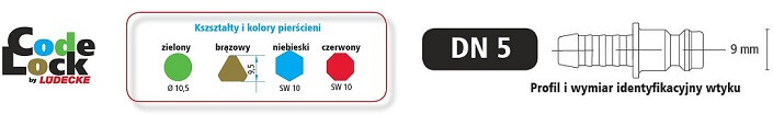 Szybkozłączki te pozwalają na łatwą identyfikacje różnych obwodów w miejscach gdzie wymagane są różne parametry dla transportowanych mediów, czy chociażby zapobiegają niewłaściwemu połączeniu zwrotnemu, na jednej tablicy rozdzielczej. Zarówno szybkozłączki jak i wtyki, posiadają oznaczenia kolorystyczne, dzięki anodyzowanym, barwionym tulejom i pierścieniom. Dodatkowo Szybkozłączki i wtyki są kodowane, oraz posiadają różne kształty, dzięki czemu nie jest możliwe połączenie ze sobą złączek w różnych kolorach.