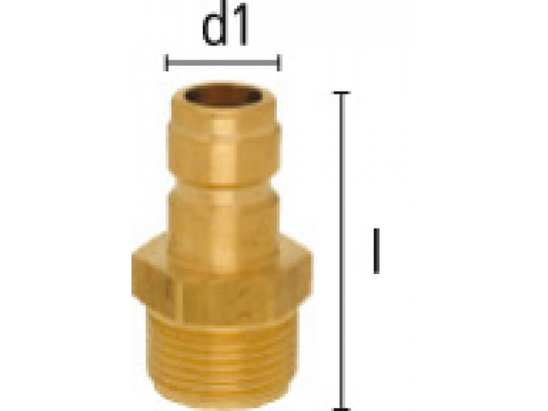 Wtyk szybkozłączki z króćcem do węża, wykonany z mosiądzu (MS 58).