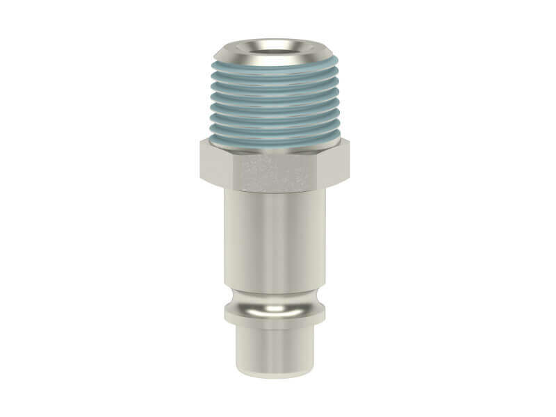 Wtyk szybkozłączki z powlekanym gwintem zewnętrznym, wykonany ze stali hartowanej.