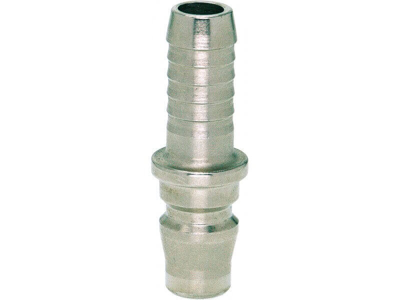 Wtyk szybkozłączki z króćcem do węża, wykonany ze stali hartowanej.