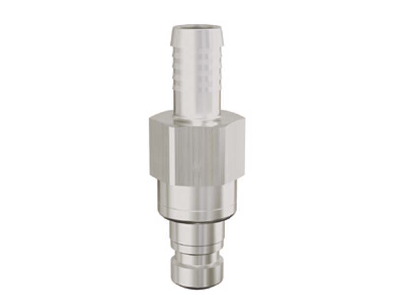Wtyk szybkozłączki DN 10 z króćcem do węża. Zawór obustronnie odcinający. Profil wtyku skandynawski. Przeznaczone do transportu powietrza, sprężonego powietrza i mediów płynnych. Odpowiednik Parker|Rectus Series 32, Cejn 408, Tema 1800 SF. Bardzo wysoki współczynnik przepływu w wymagających warunkach pracy.