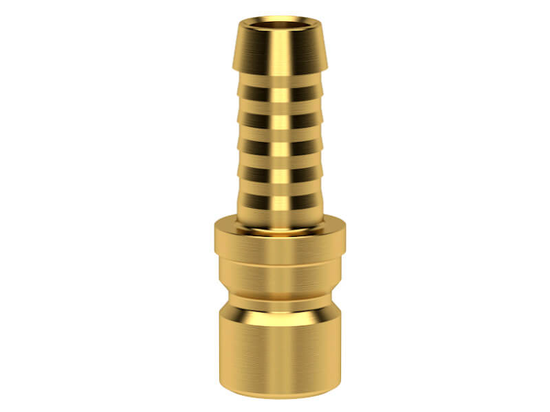 Wtyk szybkozłączki z króćcem do węża, wykonany z mosiądzu (MS 58).