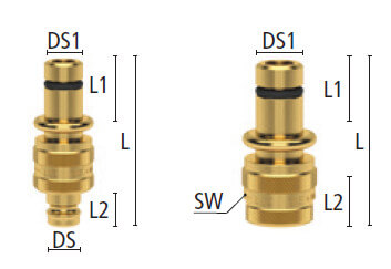 | typ | gwint | L | L1 [mm] | L2 [mm] | SW | DS | DS1 | przelot | waga [g] | nr artykułu |