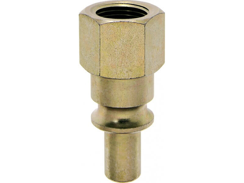 Wtyk szybkozłączki jednostronnie odcinającej z gwintem wewnętrznym, wykonane ze stali ocynkowanej.