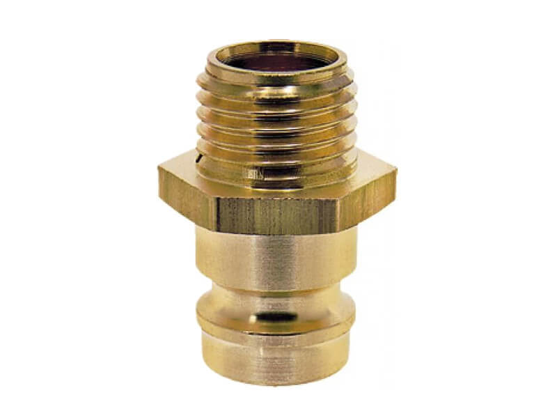 Wtyk szybkozłączki z króćcem do węża, wykonany z mosiądzu (MS 58).