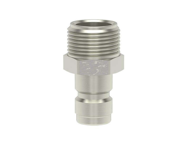 Wtyk szybkozłączki z gwintem zewnętrznym, wykonany z mosiądzu (MS 58) niklowanego.
