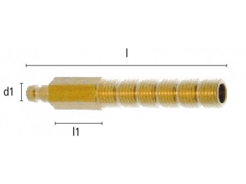 Wtyk szybkozłączki z gwintem zewnętrznym z możliwością docinania, wykonany z mosiądzu (MS 58).