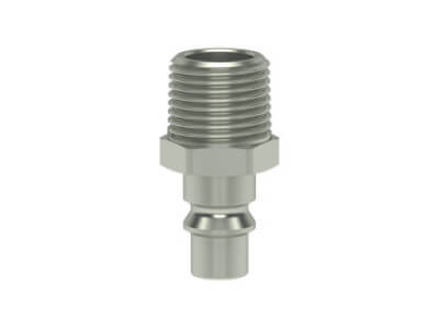 Wtyk szybkozłączki z powlekanym gwintem zewnętrznym, wykonany ze stali hartowanej.