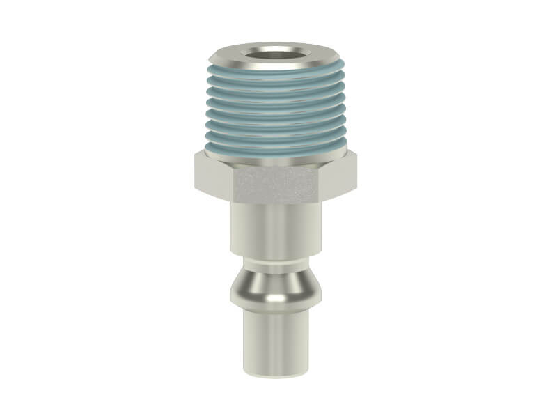 Wtyk szybkozłączki z powlekanym gwintem zewnętrznym, wykonany ze stali hartowanej.