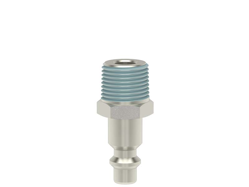 Wtyk szybkozłączki z powlekanym gwintem zewnętrznym, wykonany ze stali hartowanej.