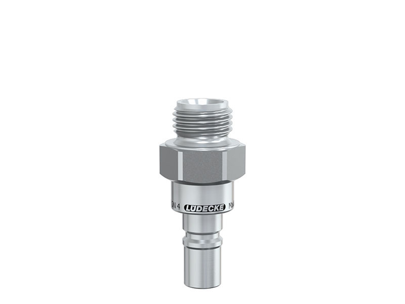 Wtyk szybkozłączki z gwintem zewnętrznym, wykonane ze stali szlachetnej i uszczelnieniem z gumy fluorowej (FKM).