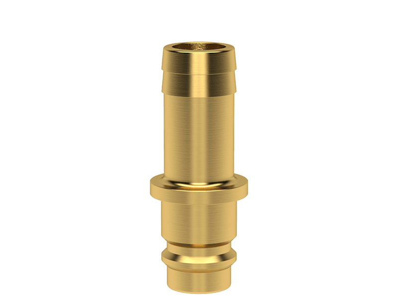 Wtyk szybkozłączki bez zaworu z króćcem do węża, wykonane z mosiądzu (MS 58), z elementami ze stali szlachetnej i uszczelnieniem z gumy nitrylowej (NBR).