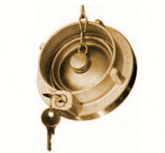 Złącze zaślepiające "Storz" (Strażackie) z kluczykiem i łańcuszkiem wykonane z mosiądzu, z uszczelką z NBR.