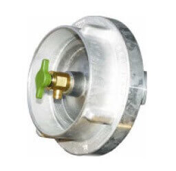 Złącze zaślepiające "Storz" (Strażackie) wykonane z aluminium, z mosiężnym zaworem spustowym i z uszczelką z NBR.