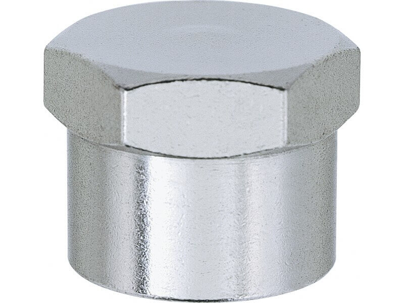 Korek z gwintem wewnętrznym wykonany z mosiądzu (MS 58) niklowanego.