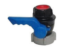 Kulowy zawór IBC z gwintami wewnętrznym (metalowy) i zewnętrznym z polipropylenu, z uszczelnieniem z FKM.
