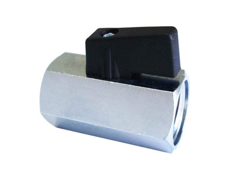 Kulowy zawór mufowy mini z mosiądzu, z uszczelnieniem z PTFE i NBR, z rączką z Nylonu.