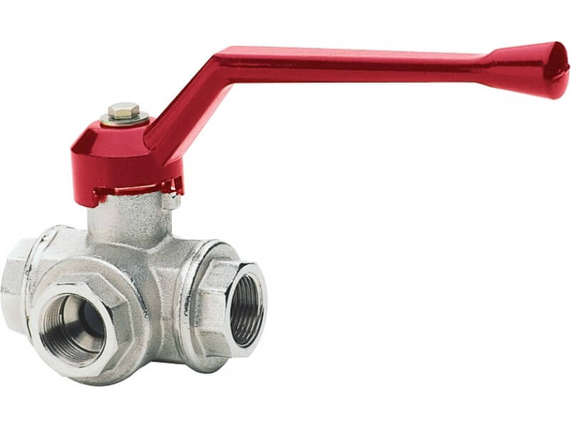 Zawór kulowy z pełnym przepływem, typ 128, w którym korpus wykonany jest z mosiądzu chromowanego, uszczelnie z PTFE.