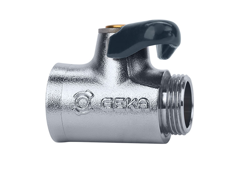 Zawór kulowy do urządzeń nawadniających wykonany z mosiądzu chromowanego, uszczelnienie z NBR i PTFE.