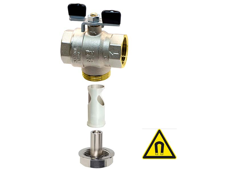 Zastosowany filtr, jest namagnetyzowany, dzięki czemu, łatwiej wyłapuje elementy metalowe zawierające żelazo z przepływającego medium.
