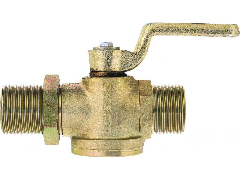 Zawór kurkowy wykonany z żeliwa ciągliwego, ocynkowanego, z elementami z mosiądzu.